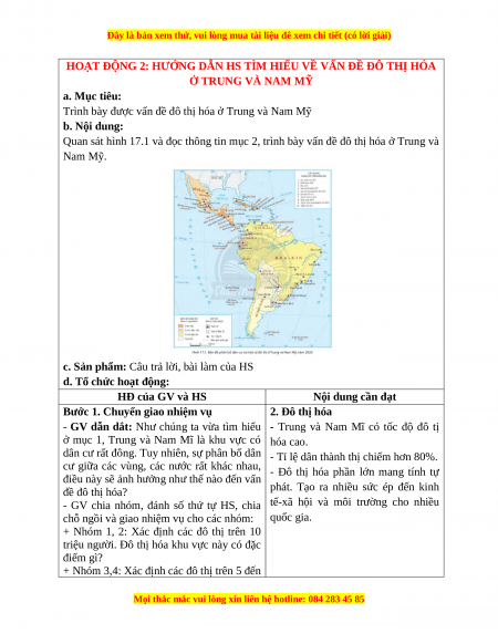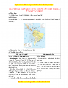 HOẠT ĐỘNG 2: HƯỚNG DẪN HS TÌM HIỂU VỀ VẤN ĐỀ ĐÔ THỊ HÓA Ở TRUNG VÀ NAM MỸ a. Mục tiêu: