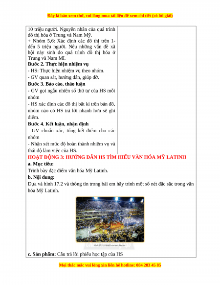 Giáo án Bài 17 Địa lí 7 Chân trời sáng tạo (2024): Đặc điểm dân cư Trung và Nam Mỹ, vấn đề đô thi hóa, văn hóa Mĩ Latinh