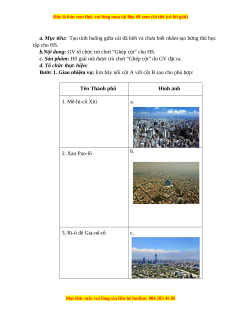 Bước 1. Giao nhiệm vụ: Em hãy nối cột A với cột B sao cho phù hợp: Tên Thành phố Hình ảnh 1. Mê-hi-cô Xiti a. 2. Xao Pao-lô b. 3. Ri-ô đê Gia-nê-rô c.