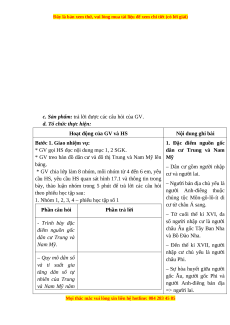 Trình bày được đặc điểm nguồn gốc dân cư Trung và Nam Mỹ, vấn đề đô thị hóa, văn hóa Mỹ latinh. 2. Về năng lực a. Năng lực chung: