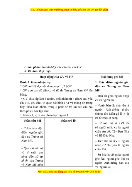 a. Mục tiêu: trình bày được đặc điểm nguồn gốc dân cư và đô thị hóa ở Trung và Nam Mỹ.