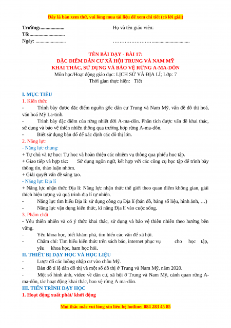 Môn học/Hoạt động giáo dục: LỊCH SỬ VÀ ĐỊA LÍ; Lớp: 7