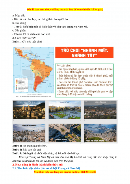 2.1. Tìm hiểu đặc điểm dân cư xã hội Trung và Nam Mỹ