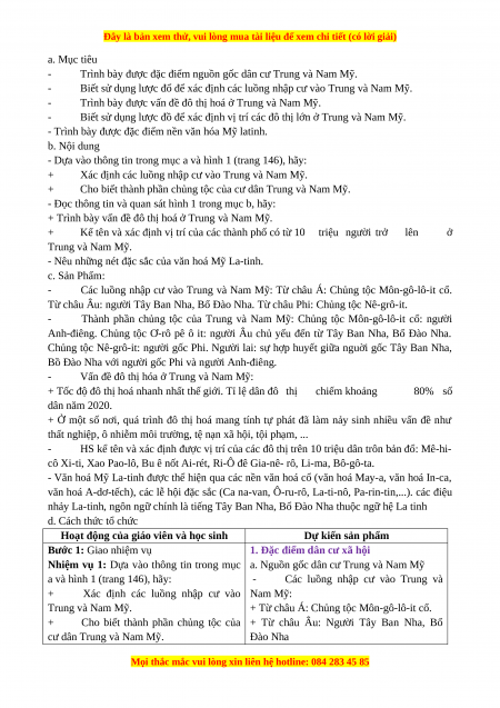 Trình bày được đặc điểm nguồn gốc dân cư Trung và Nam Mỹ, vấn đề đô thị hoá, văn hoá Mỹ La-tinh. -