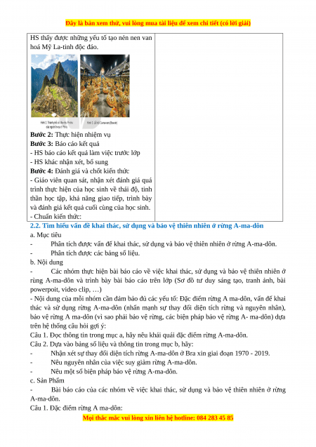 2.2. Tìm hiểu vấn đề khai thác, sử dụng và bảo vệ thiên nhiên ở rừng A-ma-dôn