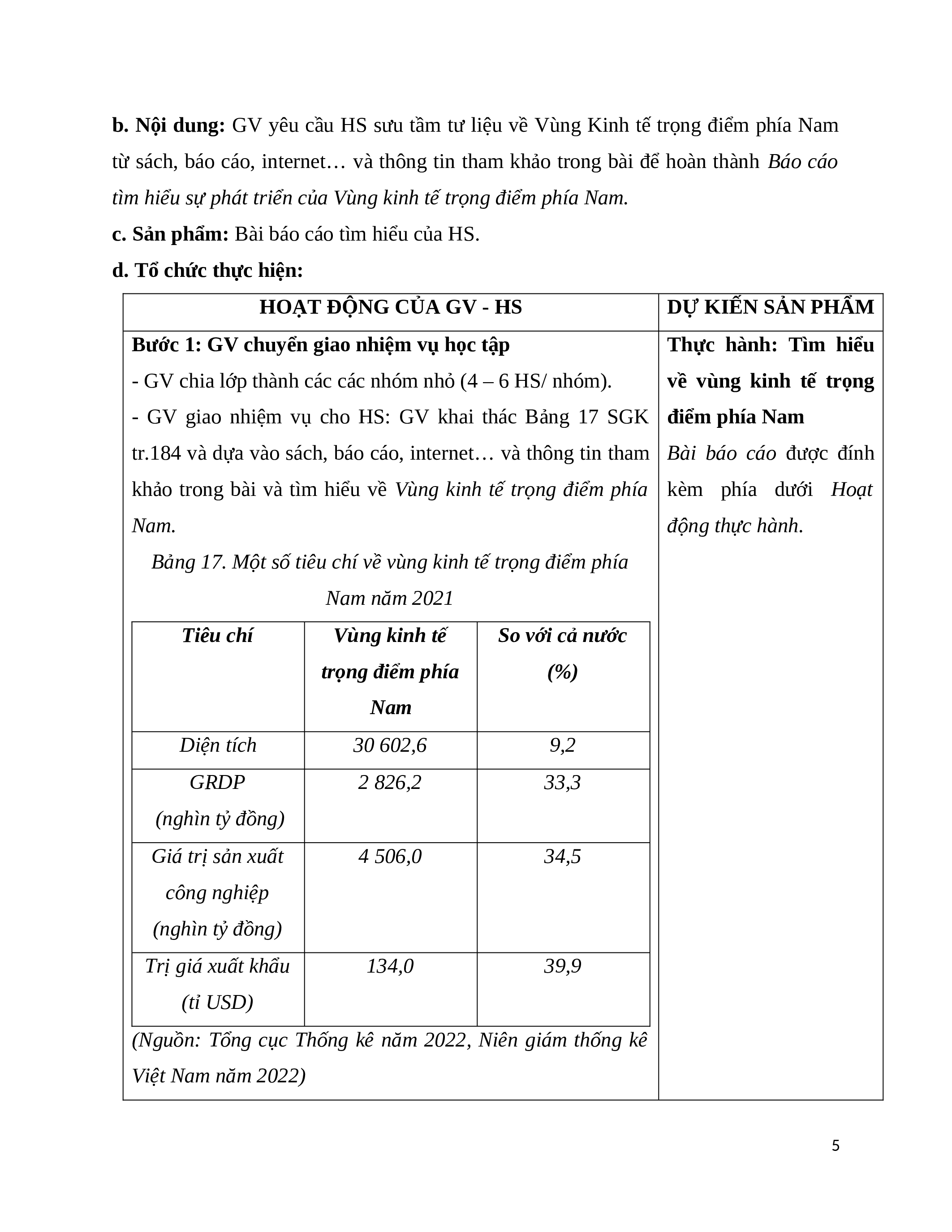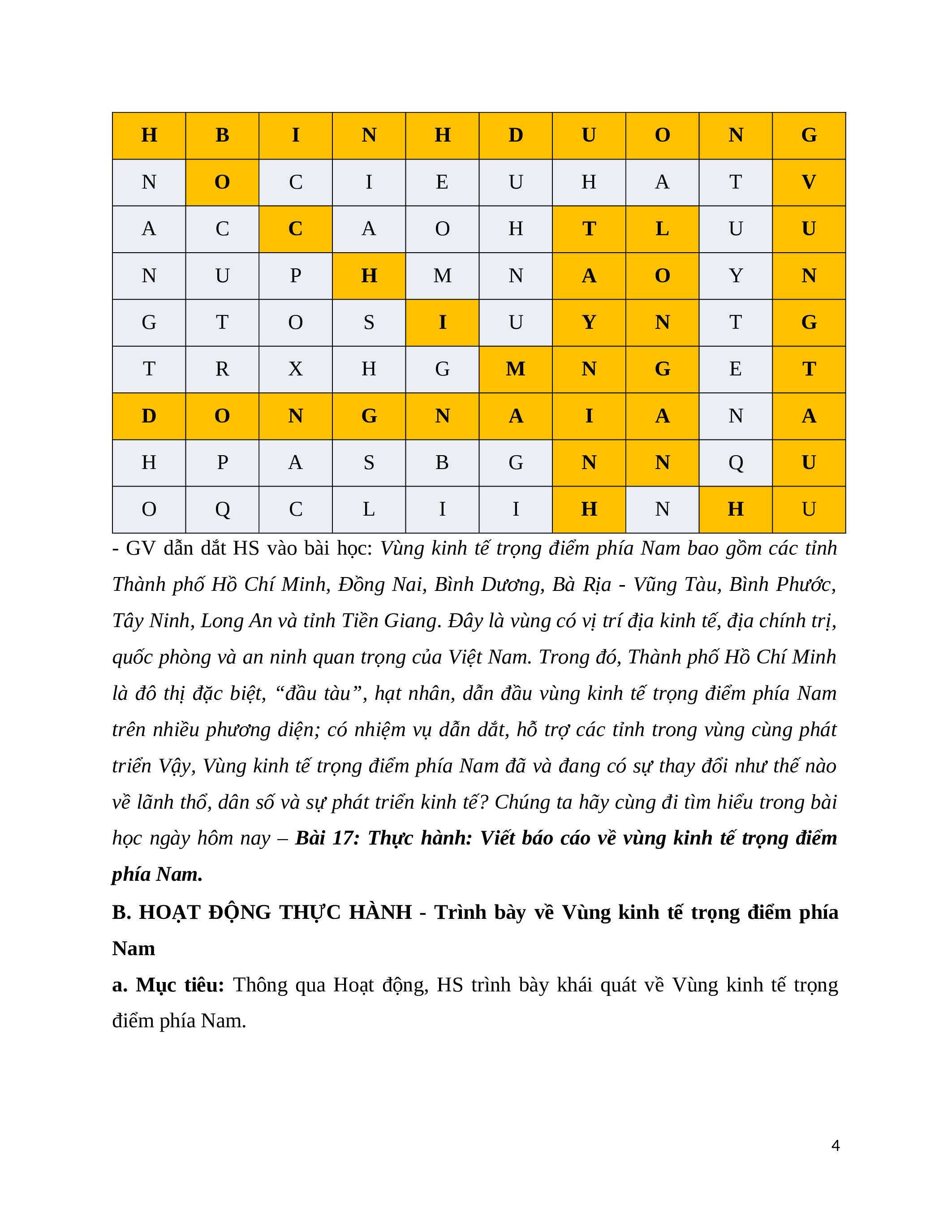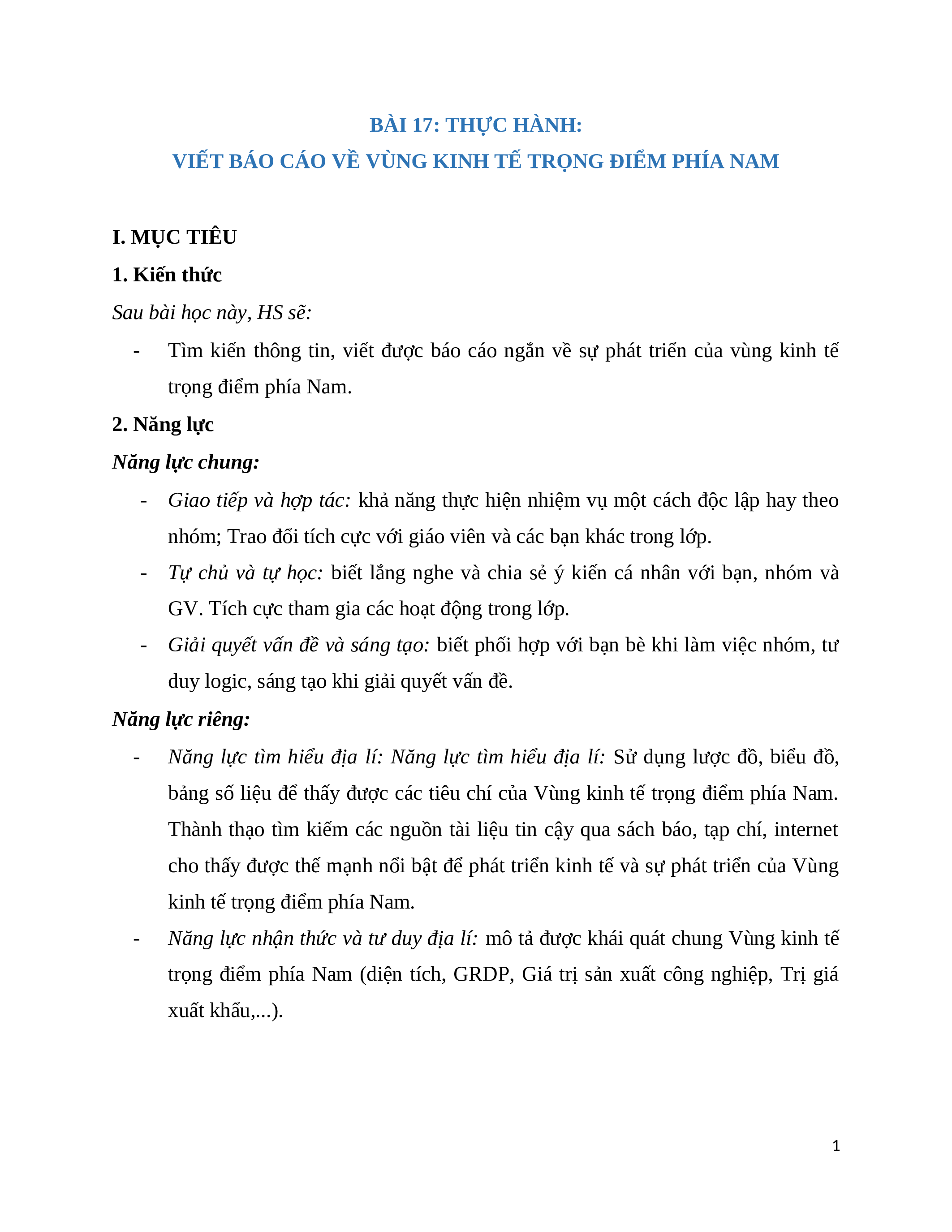 VIẾT BÁO CÁO VỀ VÙNG KINH TẾ TRỌNG ĐIỂM PHÍA NAM I. MỤC TIÊU 1. Kiến thức