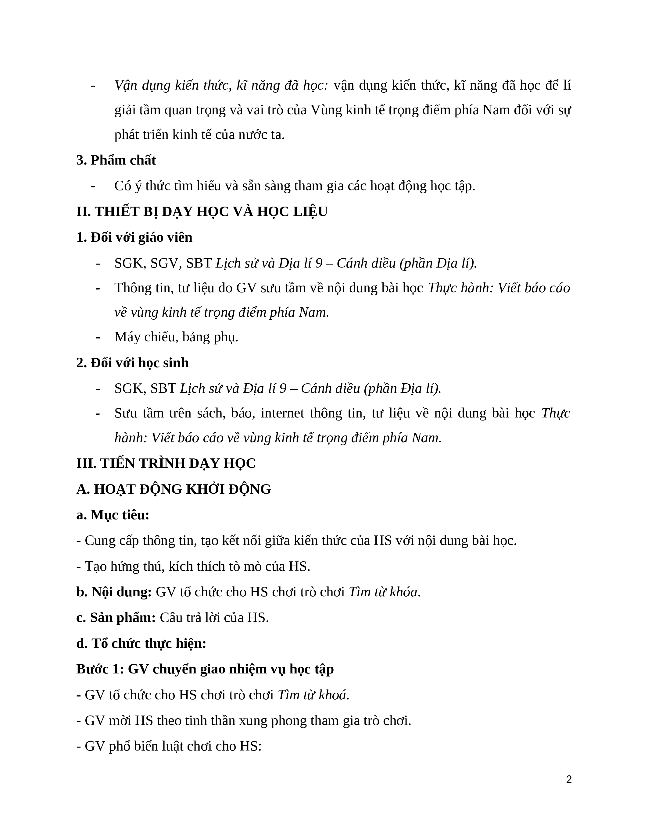 II. THIẾT BỊ DẠY HỌC VÀ HỌC LIỆU
