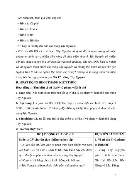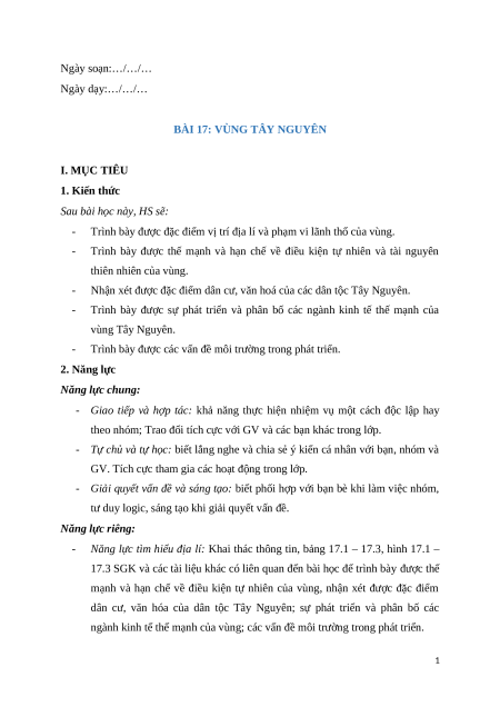 Giáo án Bài 17 Địa lí 9 Kết nối tri thức (2024): Vùng Tây Nguyên