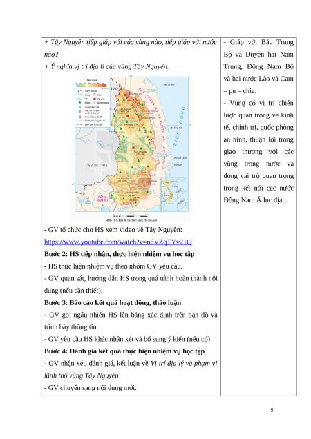 a. Mục tiêu: Xác định được trên bản đồ vị trí địa lý và phạm vi lãnh thổ của vùng Tây Nguyên.