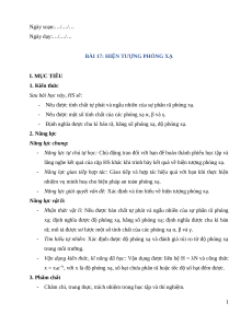 BÀI 17: HIỆN TƯỢNG PHÓNG XẠ I. MỤC TIÊU 1. Kiến thức