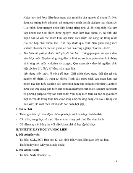 - Nhận thức hoá học: Nêu được trạng thái tự nhiên của nguyên tố nhóm IA; Nêu