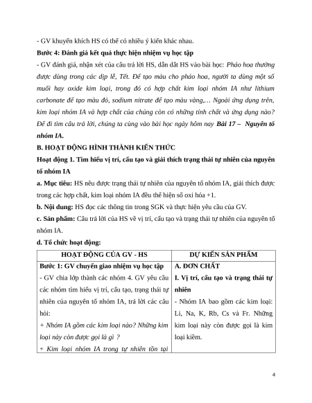 chất nhóm IA; Hoạt động nhóm và cặp đôi một cách hiệu quả, đảm bảo các
