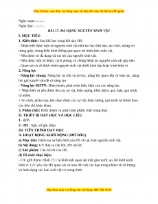 BÀI 17. ĐA DẠNG NGUYÊN SINH VẬT I. MỤC TIÊU: