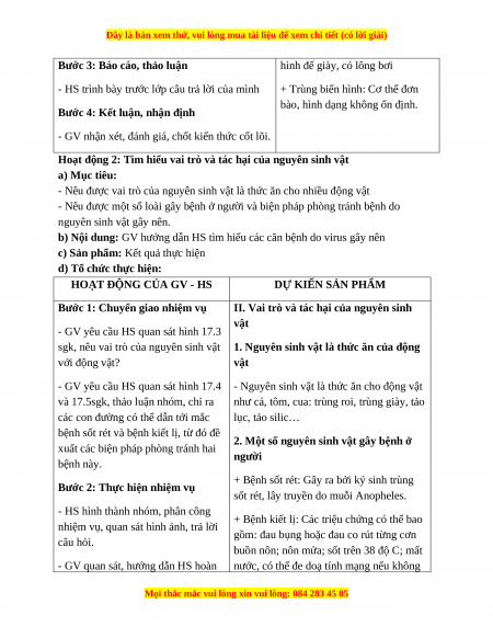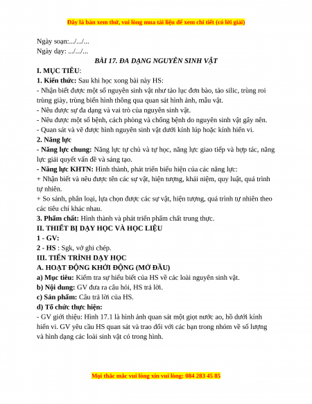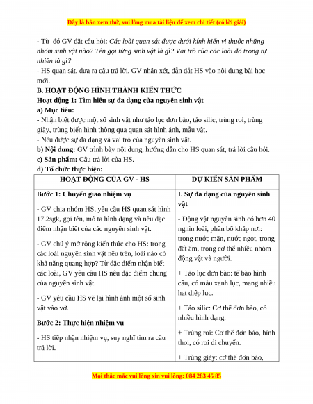 Giáo án Bài 17 KHTN 6 Cánh diều (2024): Đa dạng nguyên sinh vật