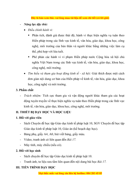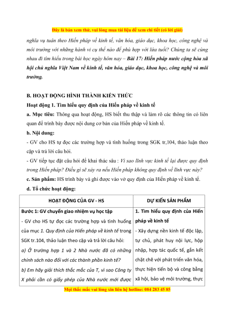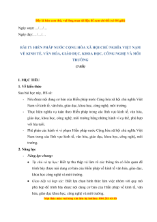Giáo án Bài 17 KTPL 10 Cánh diều: Hiến pháp nước Cộng hòa xã hội chủ nghĩa Việt Nam về kinh tế, văn hóa, giáo dục, khoa học, công nghệ và môi trường