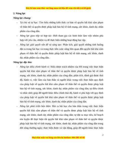 - Nêu được một số quy định cơ bản của pháp luật về quyền bất khả xâm phạm về