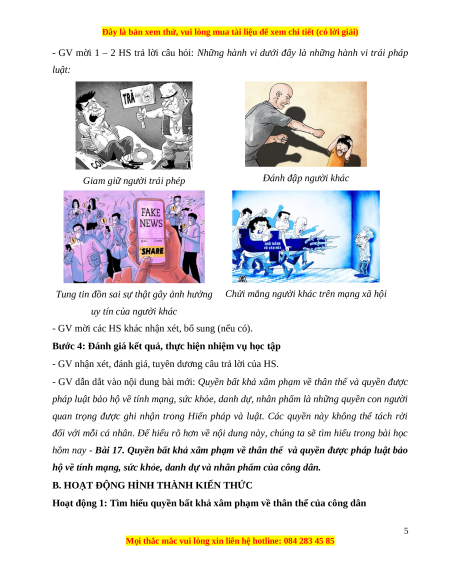 - Nhận biết được hậu quả của hành vi vi phạm quyền bất khả xâm phạm về thân thể