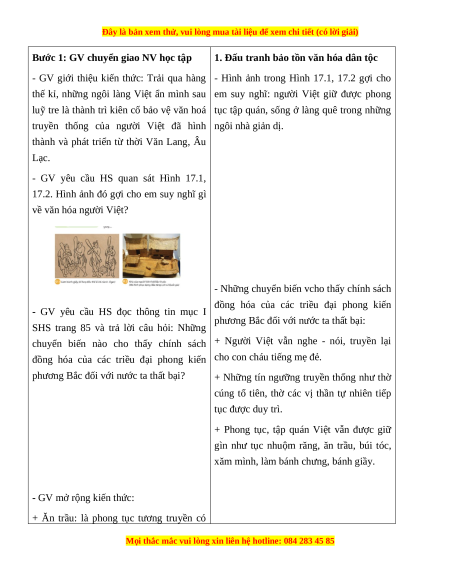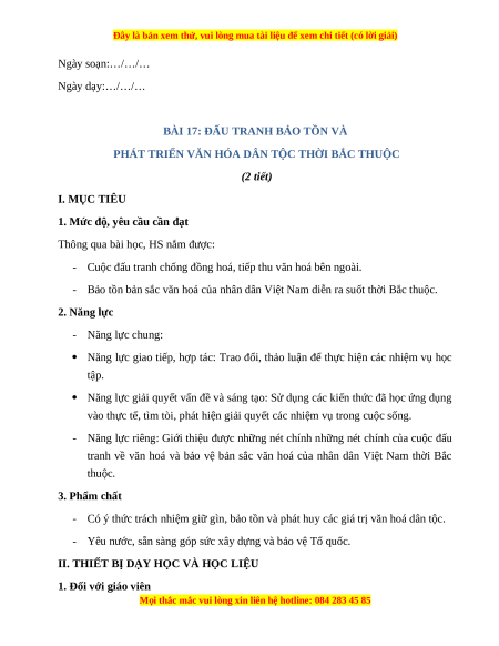 Giáo án Bài 17 Lịch sử 6 Chân trời sáng tạo (2024): Đấu tranh bảo tồn và phát triển văn hóa dân tộc thời kì Bắc thuộc