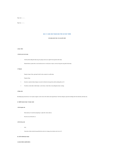 Giáo án Bài 17 Lịch sử 6 Kết nối tri thức (năm 2024): Cuộc đấu tranh bảo tồn và phát triển văn hóa dân tộc của người Việt