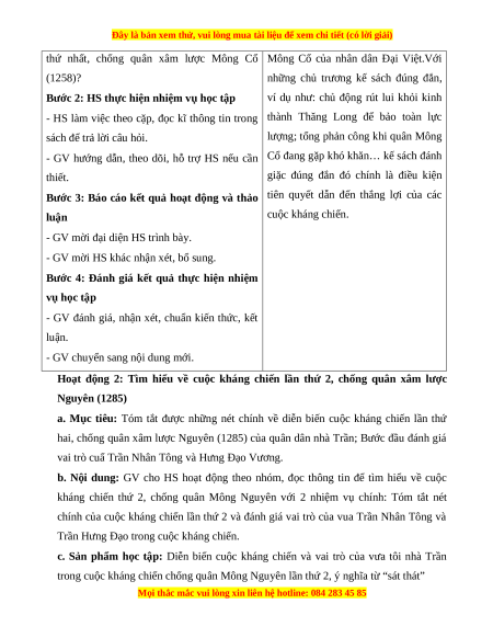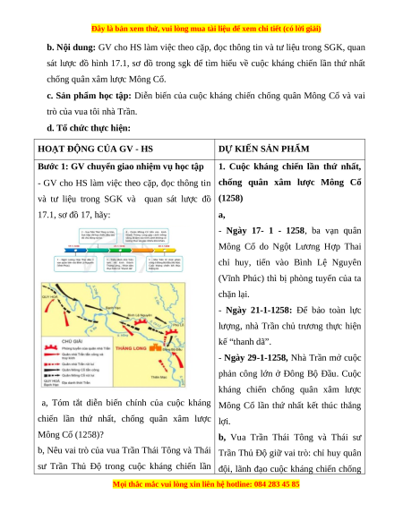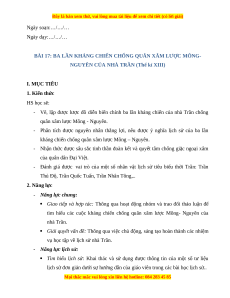 Giáo án Bài 17 Lịch sử 7 Cánh diều (Phiên bản 2): Ba lần kháng chiến chống quân xâm lược Mông - Nguyên của nhà Trần