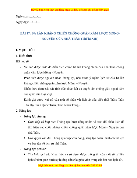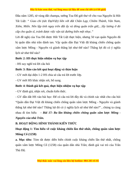 BÀI 17: BA LẦN KHÁNG CHIẾN CHỐNG QUÂN XÂM LƯỢC MÔNG-
