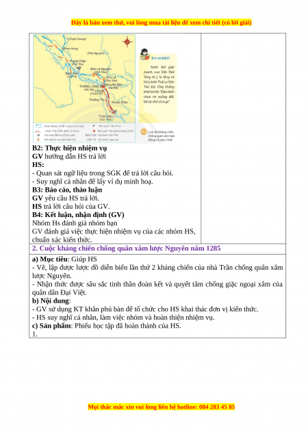 2. Cuộc kháng chiến chống quân xâm lược Nguyên năm 1285 a) Mục tiêu: Giúp HS