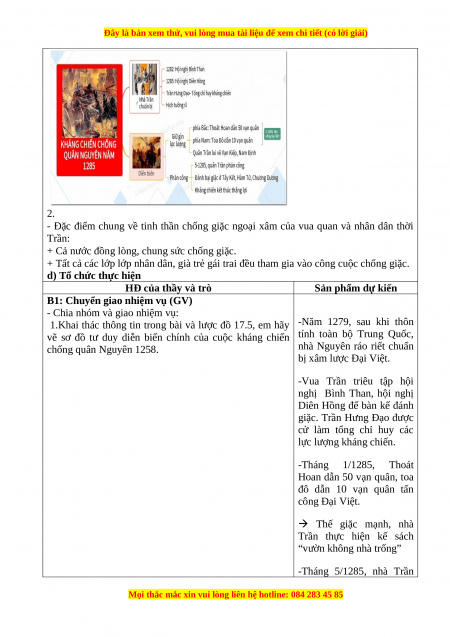 - Nhận thức được sâu sắc tinh thần đoàn kết và quyết tâm chống giặc ngoại xâm của quân dân Đại Việt. b) Nội dung: