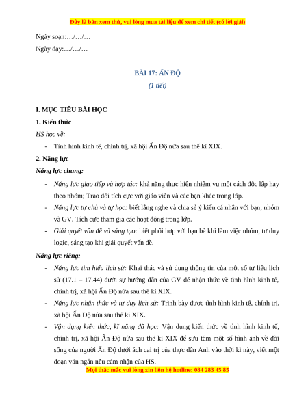 Ngày soạn:…/…/… Ngày dạy:…/…/… BÀI 17: ẤN ĐỘ (1 tiết)