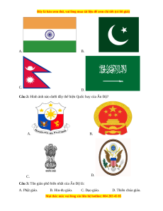 Câu 3: Tôn giáo phổ biến nhất của Ấn Độ là: A. Phật giáo. B. Hin-đu giáo. C. Đạo giáo. D. Thiên chúa giáo.