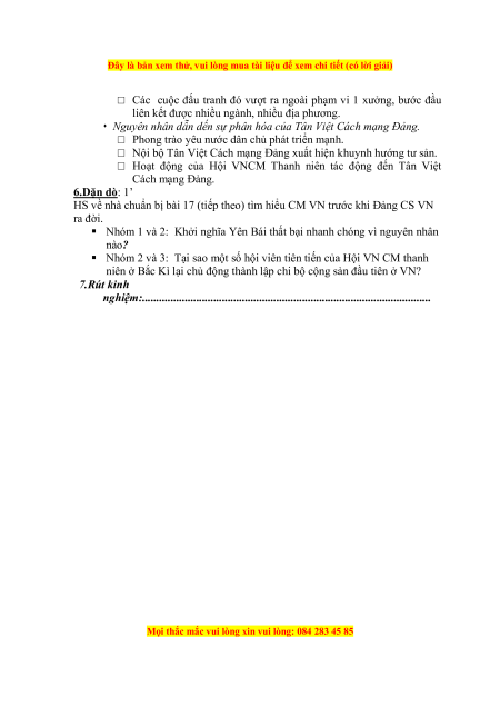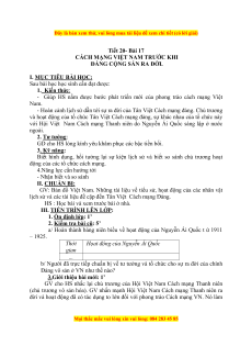HS về nhà chuẩn bị bài 17 (tiếp theo) tìm hiểu CM VN trước khi Đảng CS VN