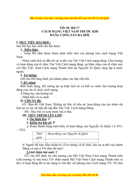 Đây là bản xem thử, vui lòng mua tài liệu để xem chi tiết (có lời giải) Tiết 20- Bài 17