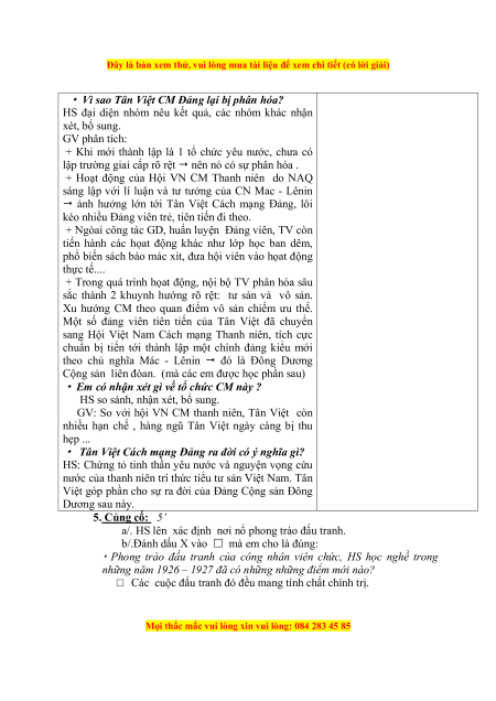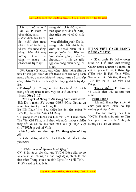 (chủ trương vô sản hóa). GV nhấn mạnh Hội Việt Nam Cách mạng Thanh niên ra
