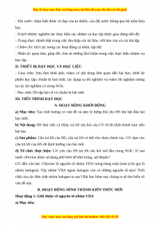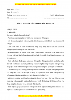 Giáo án Bài 17: Nguyên tố và đơn chất halogen Hóa học 10 Cánh diều