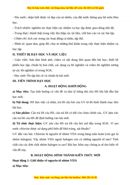 Hoạt động 1: Giới thiệu về nguyên tố nhóm VIIA a) Mục tiêu:
