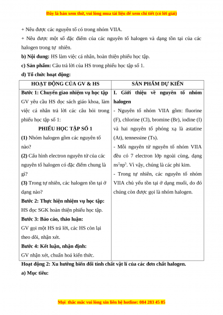 GV yêu cầu HS đọc sách giáo khoa, làm halogen