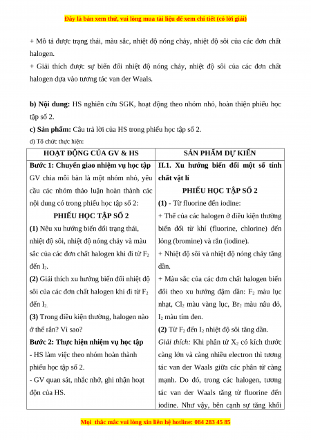 Hoạt động 2: Xu hướng biến đổi tính chất vật lí của các đơn chất halogen. a) Mục tiêu: