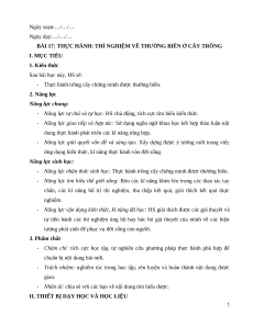 BÀI 17: THỰC HÀNH: THÍ NGHIỆM VỀ THƯỜNG BIẾN Ở CÂY TRỒNG I. MỤC TIÊU 1. Kiến thức Sau bài học này, HS sẽ: