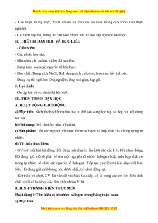 Giáo án Bài 17: Tính chất vật lý và nhóm hóa học nguyên tố nhóm VIIA Hóa học 10 Chân trời sáng tạo