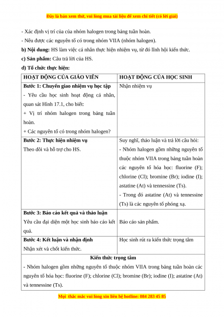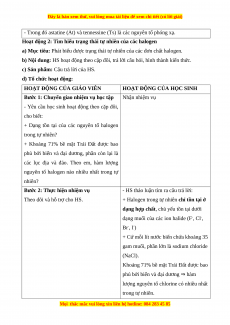 Hoạt động 1: Tìm hiểu vị trí nhóm halogen trong bảng tuần hoàn. a) Mục tiêu: