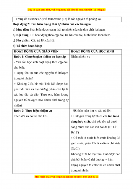 a) Mục tiêu: Phát biểu được trạng thái tự nhiên của các đơn chất halogen.