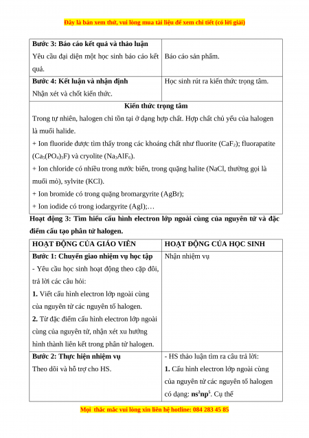 - Xác định vị trí của của nhóm halogen trong bảng tuần hoàn.