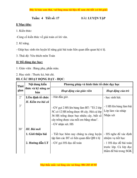 - Giúp học sinh rèn luyện kĩ năng giải bài toán liên quan đến quan hệ tỉ lệ.