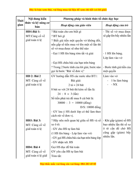 tập làm các BT có liên quan đến QH tỉ lệ nhiệm vụ tiết học
