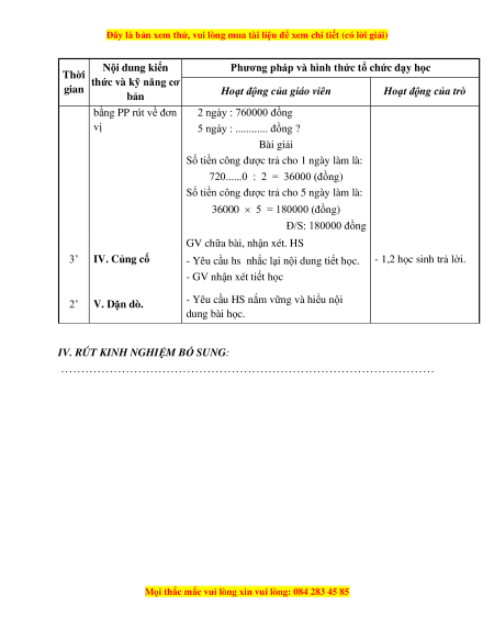 Hoạt động của trò bản bằng PP rút về đơn 2 ngày : 760000 đồng vị
