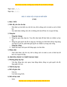 BÀI 17: BẢO VỆ CƠ QUAN HÔ HẤP (3 tiết) I. MỤC TIÊU