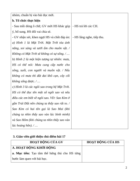 3. Giáo viên giới thiệu chủ điểm bài 17 HOẠT ĐỘNG CỦA GV