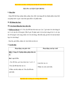 Tiết 170 : LUYỆN TẬP CHUNG I. Mục tiêu:
