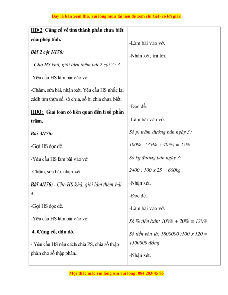 Bài 4/176: - Cho HS khá, giỏi làm thêm bài -Nhận xét. 4. -Đọc đề. -Gọi HS đọc đề. -Làm bài vào vở.