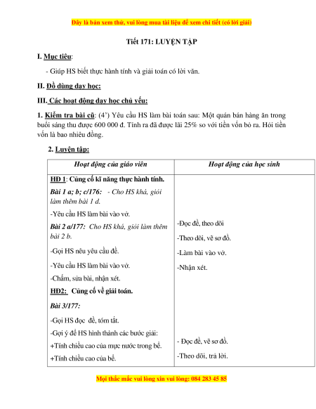 Giáo án Bài 171 Toán lớp 5: Luyện tập chung (Trang 177)