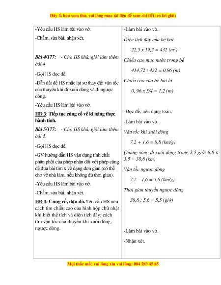 Bài 5/177: - Cho HS khá, giỏi làm thêm Vận tốc khi xuôi dòng bài 5.